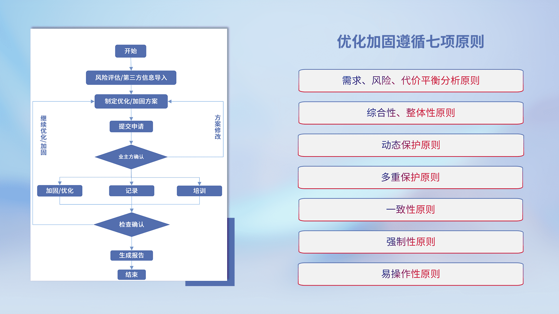 最大程度利用现有资产,,,,对评估发现的问题进行封堵与整改,,,防止漏洞被利用,,提升整体网络安全性,,为客户带来高标准的优化加固服务。。