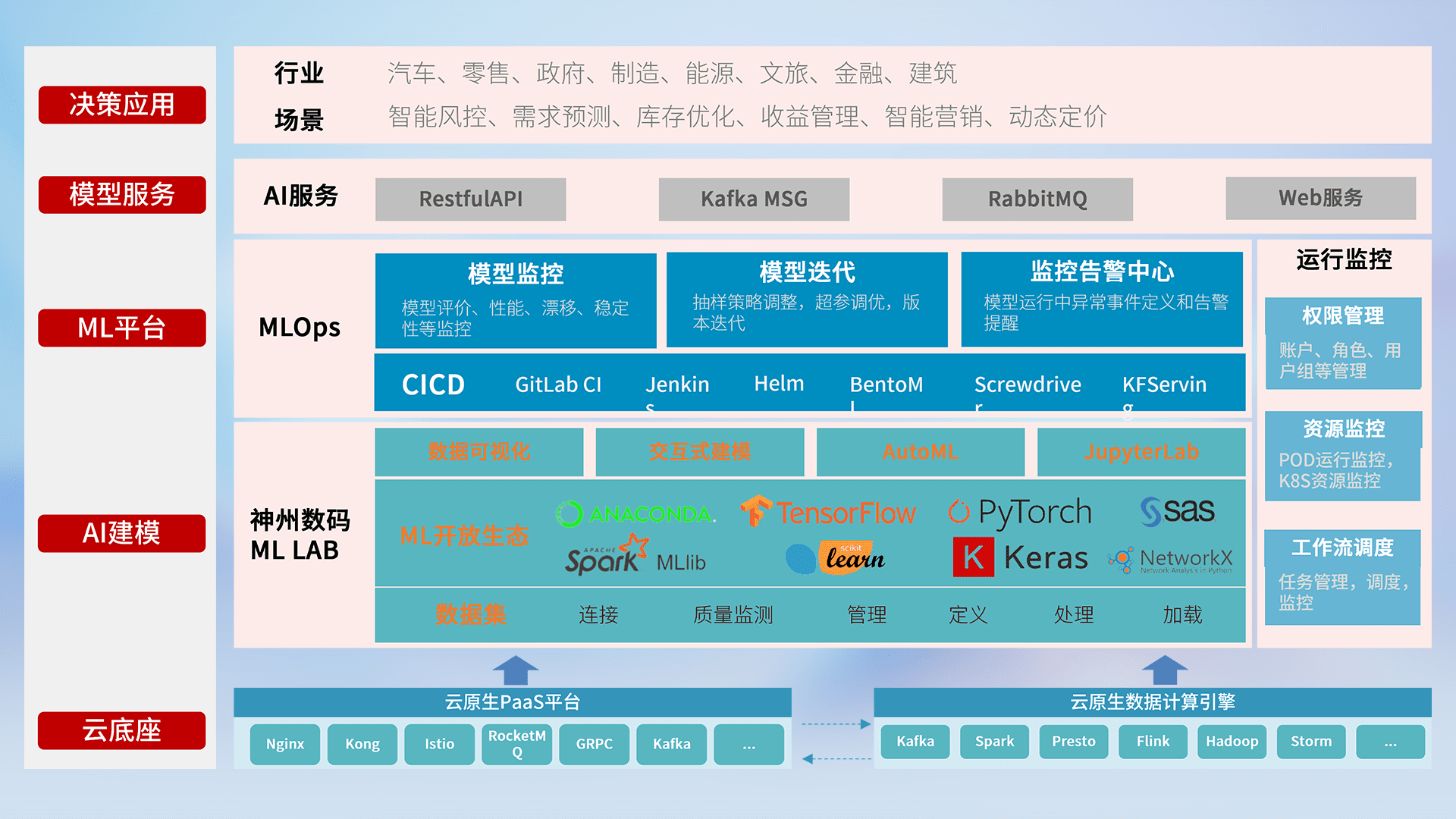 数据+模型双引擎驱动,,,面向智能服务场景,,,,快速灵活利用AI技术,,支持业务决策,,,助力企业智能化转型破局。。